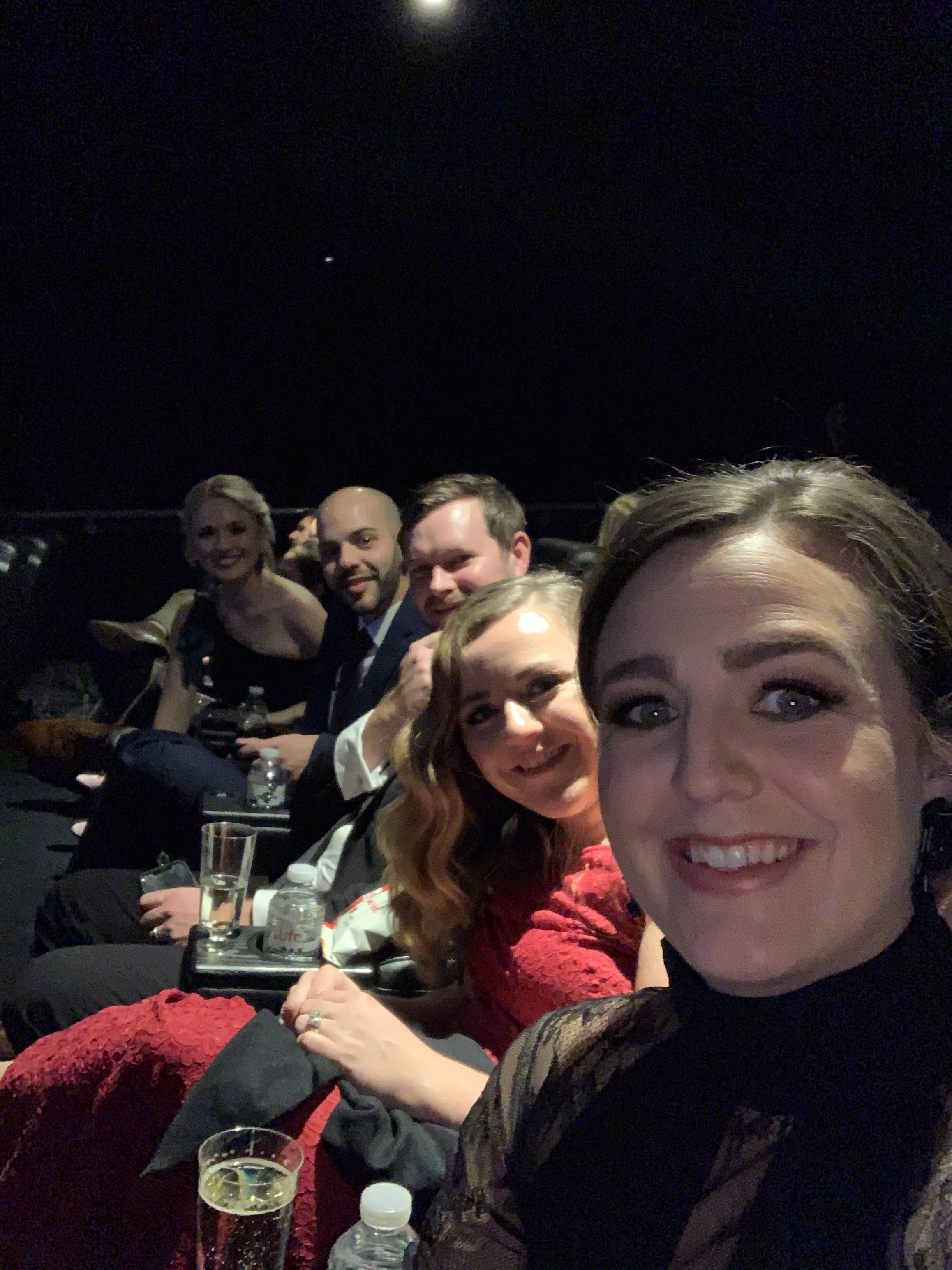 Rachel & I snuck back out, with Heather & Wynn behind, then Mallory & Brian but somehow only Heather made it out with us for another go down the carpet. Rachel guided us through and we ended up on the other side of the carpet feet away from Eddie and Callum and trying to convince their guards to let us get a picture (with little success I might add as they kept shuffling them to fans with notebooks and pictures to sign instead). I will say, our version of the red carpet was way less stressful than theirs I imagine with all of the being yelled at at things being shoved in your face. It truly must be exhausting!